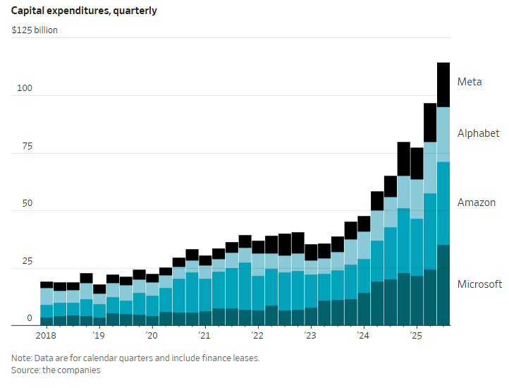 Trong hai ngày 29-30/10, cả Meta, Alphabet, Microsoft và Amazon đều thông báo với các nhà đầu tư rằng họ sẽ tăng chi tiêu vào năm 2026. Giới đầu tư đã chấp thuận kế hoạch của Google và Amazon, nhưng một số lại tỏ ra lo ngại về dự định của Meta và Microsoft.
