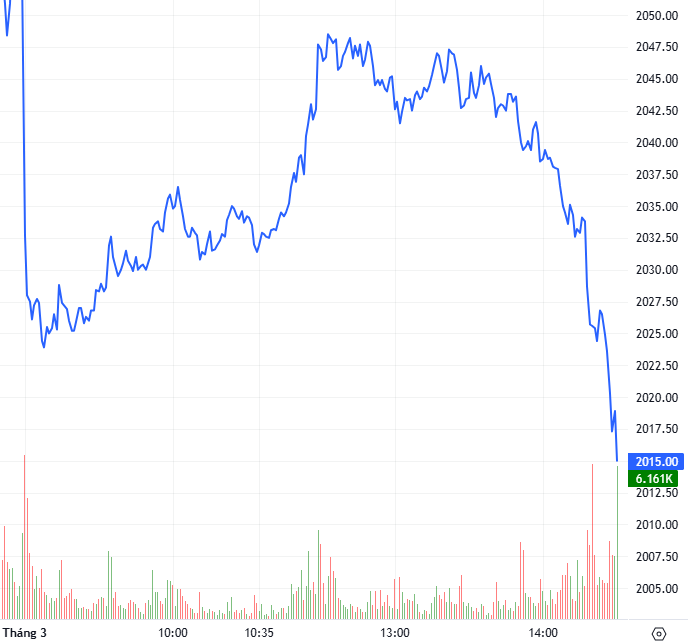 Trong phiên giao dịch ngày 02/03/2026, hợp đồng 41I1G3000 giảm điểm mạnh kể từ khi mở cửa và chuyển sang trạng thái giằng co với lợi thế nghiêng về Phe Short trong nửa đầu phiên nhưng lực mua dần phục hồi giúp I1G3000 thu hẹp đà giảm trong cuối phiên sáng. Bước sang phiên chiều, áp lực bán gia tăng trở lại và áp đảo bên mua khiến hợp đồng này tiếp tục lao dốc kéo dài đến cuối phiên và đóng cửa trong sắc đỏ bi quan, giảm 38.6 điểm.