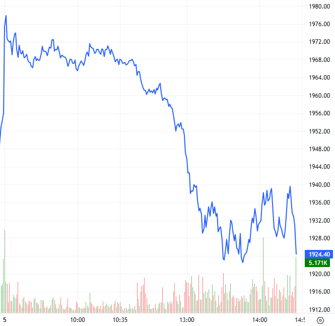 Trong phiên giao dịch ngày 05/03/2026, hợp đồng 41I1G3000 bật tăng ngay từ khi mở cửa và nhanh chóng chuyển sang diễn biến giằng co trong phần lớn thời gian phiên sáng nhưng áp lực bán gia tăng khiến I1G3000 đảo chiều giảm điểm vào cuối phiên sáng. Bước sang phiên chiều, phe Short tiếp tục áp đảo khiến hợp đồng này lao dốc không phanh mặc cho bên mua cố gắng níu giữ nhưng vẫn không thể thay đổi được tình hình. Qua đó, 41I1G3000 đóng cửa trong sắc đỏ tại mốc 1,924.4 điểm, giảm 31.6 điểm.