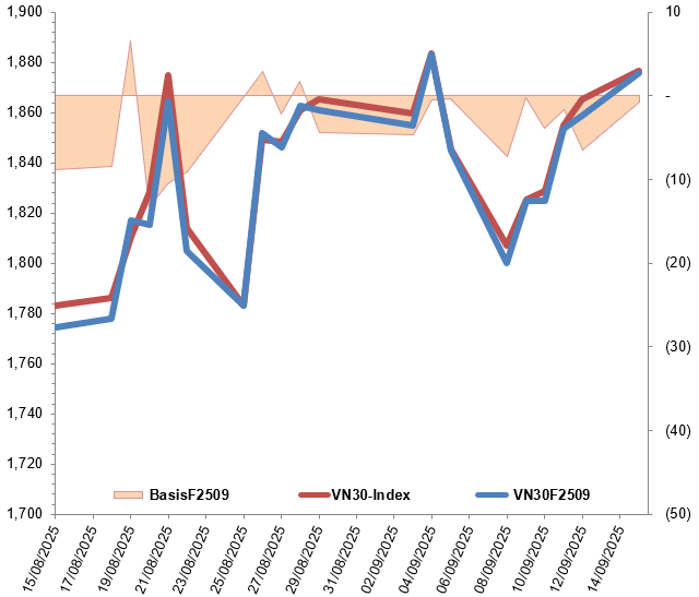 Biến động VN30F2509 và VN30-Index