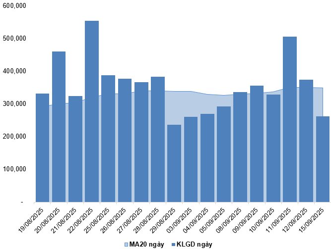 Trong phiên giao dịch ngày 15/09/2025, VN30-Index tiếp tục tăng điểm phiên thứ 5 liên tiếp kèm theo khối lượng có sự gia tăng so với phiên trước cho thấy tâm lý khá lạc quan của nhà đầu tư đang hiện hữu.