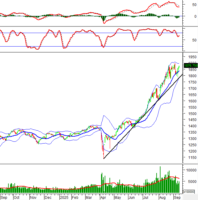 Trong phiên giao dịch ngày 15/09/2025,VN30F2509 liên tục biến động giằng co quanh mốc tham chiếu kéo dài trong suốt phiên sáng. Bước sang phiên chiều, trạng thái đi ngang vẫn tiếp diễn trong nửa đầu phiên nhưng phe Long dần chiếm vị thế áp đảo trong nửa phiên còn lại giúp cho F2509 tăng vọt và đóng cửa ở mốc 1,876 điểm, tăng 17 điểm.