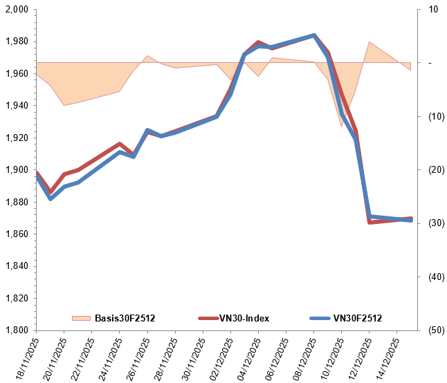 Chứng khoán phái sinh ngày 16/12/2025: Liên tục giằng co