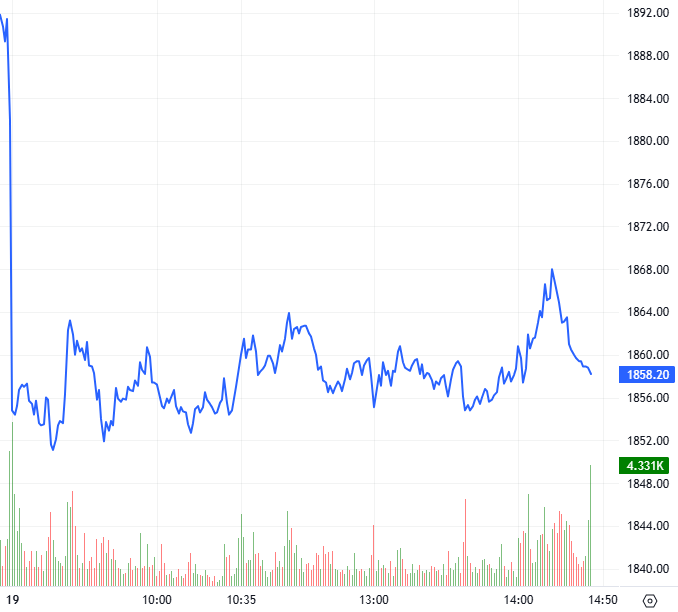 Trong phiên giao dịch ngày 19/03/2026, hợp đồng 41I1G3000 giảm mạnh ngay từ đầu phiên sáng và chuyển sang trạng thái giằng co với biên độ hẹp kéo dài trong suốt thời gian còn lại của phiên. Bước sang phiên chiều, lực mua có xuất hiện trở lại giúp hợp đồng bật tăng nhẹ nhưng áp lực bán tiếp tục áp đảo khiến I1G3000 suy yếu và đóng cửa quanh mốc 1,858.2 điểm, giảm 23.7 điểm.