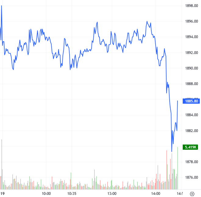 Trong phiên giao dịch ngày 19/11/2025, hợp đồng 41I1FB000 giảm từ khi mở cửa và liên tục giằng co trong phần lớn thời gian phiên sáng. Bước sang phiên chiều, phe Long dần đánh mất vị thế đồng thời áp lực bán bất ngờ gia tăng mạnh khiến I1FB000 lao dốc nhanh về dưới 1,880 điểm và đóng cửa trong sắc đỏ, giảm 12.2 điểm.