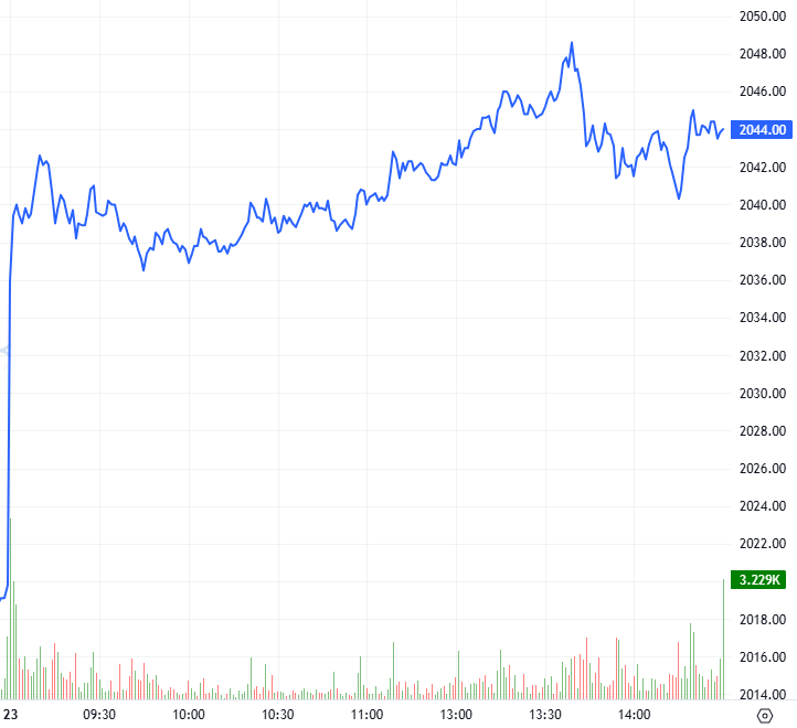 Trong phiên giao dịch ngày 23/02/2026, hợp đồng 41I1G3000 sớm bật tăng mạnh sau phiên ATO và dần chuyển sang trạng thái giằng co với lợi thế nghiêng về phe Long trong suốt thời gian phiên sáng. Bước sang phiên chiều, diễn biến không có nhiều thay đổi mặc cho áp lực bán có quay trở lại nhưng bên mua vẫn có phần lấn lướt hơn giúp cho I1G3000 giữ vững đà tăng đến cuối phiên và đóng cửa tại mốc 2,044 điểm, tăng 24.2 điểm.