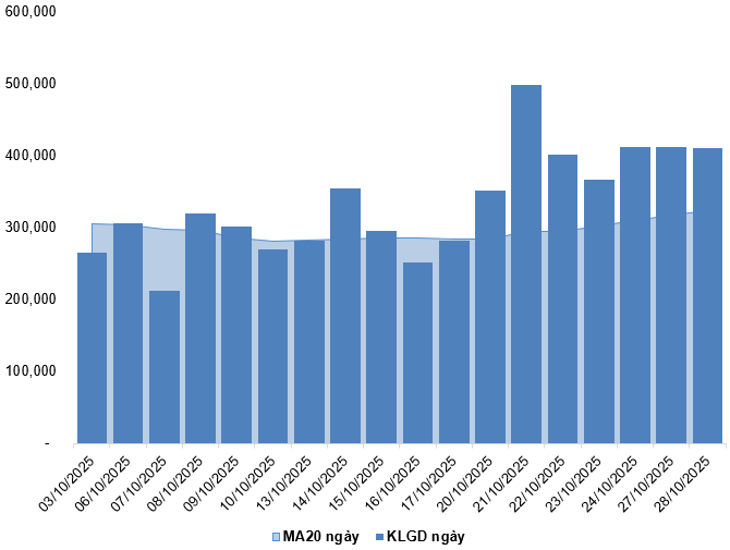 Trong phiên giao dịch ngày 28/10/2025, VN30-Index đảo chiều tăng điểm sau khi kiểm tra lại đường SMA 50 ngày cho thấy tâm lý của nhà đầu tư đã bớt bi quan.