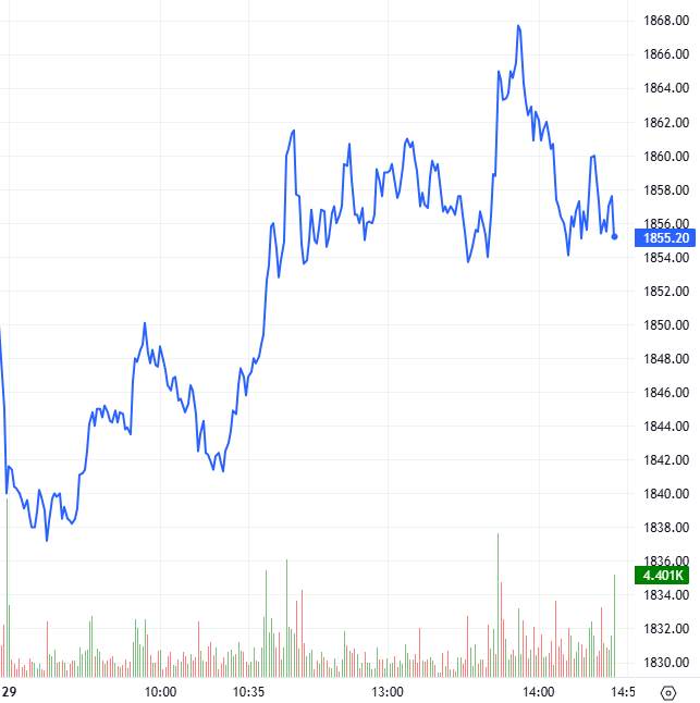 Trong phiên giao dịch ngày 29/09/2025, hợp đồng 41I1FA000 diễn biến giằng co với lợi thế nghiêng về phe Long trong nửa đầu phiên và lực mua dần áp đảo giúp FA000 tăng vọt đến cuối phiên sáng. Bước sang phiên chiều, bên mua tiếp tục chiếm ưu thế đưa hợp đồng lên vùng cao nhất trong ngày, nhưng bên bán xuất hiện trở lại khiến hợp đồng này thu hẹp đà tăng và đóng cửa tại 1,855.2 điểm, tăng hơn 15 điểm so với phiên trước.