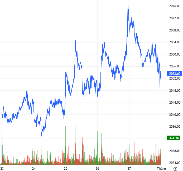 Hiện tại, chỉ số nằm trên đường Middle của Bollinger Bands và đang tiến đến gần đỉnh cũ tháng 01/2026 (tương đương vùng 2,095-2,125 điểm) cho thấy triển vọng ngắn hạn vẫn khá tích cực.