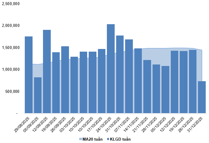 Khối lượng và giá trị giao dịch của thị trường phái sinh lần lượt giảm 24.64% và 23.88% so với phiên ngày 30/12/2025. Tính chung cả tuần, khối lượng và giá trị giao dịch tuần lần lượt tăng 16.34% và 19.48% so với tuần trước.