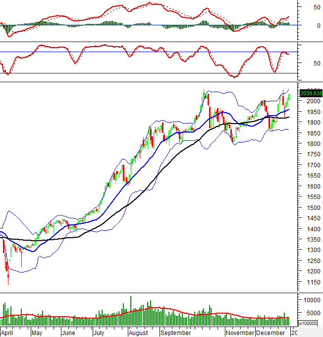Hiện tại, chỉ số đang nằm trên đường Middle của Bollinger Bands trong khi chỉ báo MACD tiếp tục tăng sau khi cho tín hiệu mua càng ủng hộ thêm cho đà tăng trong ngắn hạn.