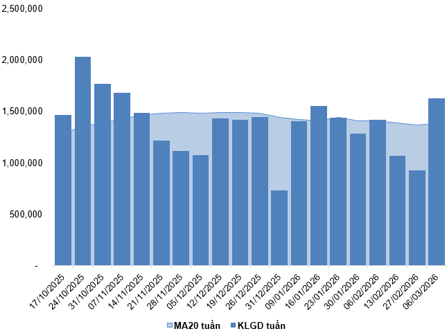 Khối lượng và giá trị giao dịch của thị trường phái sinh lần lượt tăng 11.71% và 10.13% so với phiên ngày 05/03/2026. Tính chung cả tuần, khối lượng và giá trị giao dịch tuần lần lượt tăng 75.24% và 67.31% so với tuần trước.