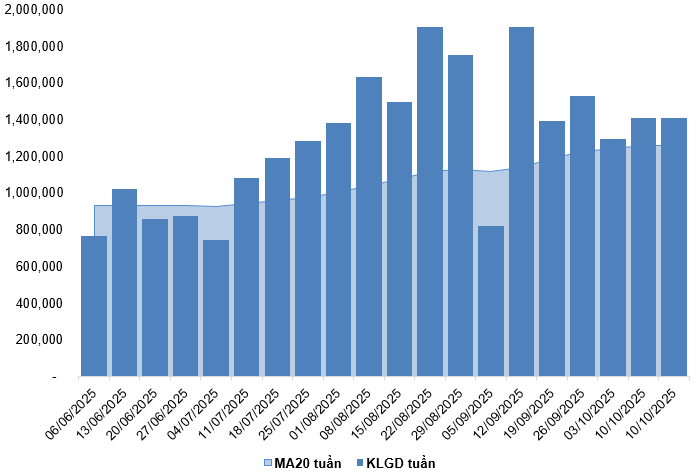 Khối lượng và giá trị giao dịch của thị trường phái sinh lần lượt giảm 10.18% và 9.13% so với phiên ngày 09/10/2025. Tính chung cả tuần, khối lượng và giá trị giao dịch tuần lần lượt tăng 8.86% và 12.56% so với tuần trước.