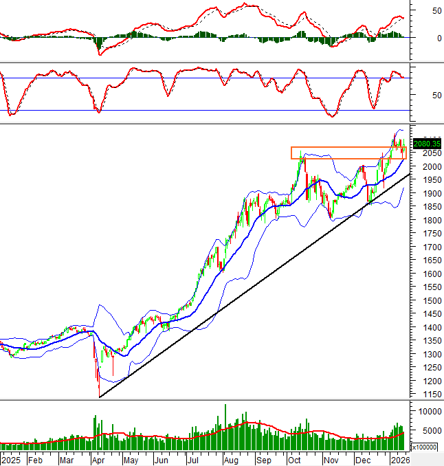 Trong tuần giao dịch 12-16/01/2026, hợp đồng 41I1G2000 đã có tuần giao dịch khá giằng co khi hợp đồng này sớm bật tăng trong các phiên đầu tuần với lợi thế nghiêng về phe Long. Tuy nhiên, tình hình có sự chuyển biến khi áp lực bán áp đảo xuất hiện ở các phiên trong tuần khiến I1G2000 nhanh chóng đảo chiều và lao dốc. Đến phiên cuối tuần, bên mua quay trở lại giúp hợp đồng thu hẹp đà giảm và bật tăng trở lại. Qua đó, 41I1G2000 đóng cửa trong sắc xanh tại mốc 2,081.2 điểm, tăng 20.2 điểm so với cuối tuần trước.