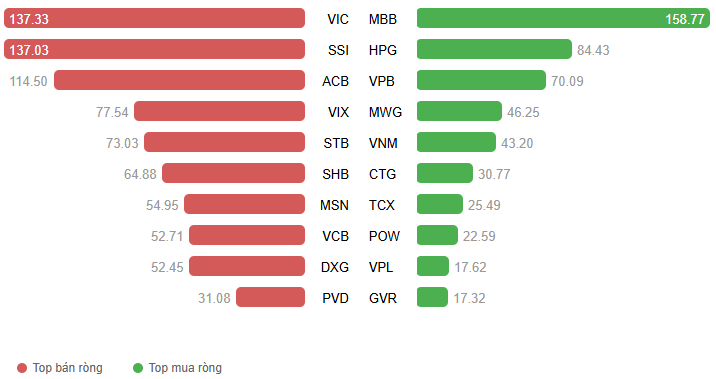 Giá trị giao dịch ròng theo mã cổ phiếu. Đvt: Tỷ đồng