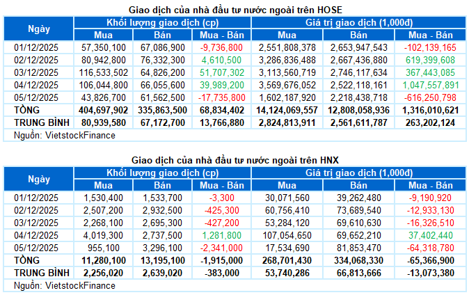 I. THỊ TRƯỜNG CHỨNG KHOÁN VIỆT NAM TUẦN 01-05/12/2025