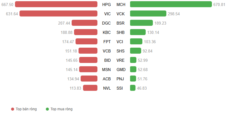 Giá trị giao dịch ròng theo mã cổ phiếu. Đvt: Tỷ đồng