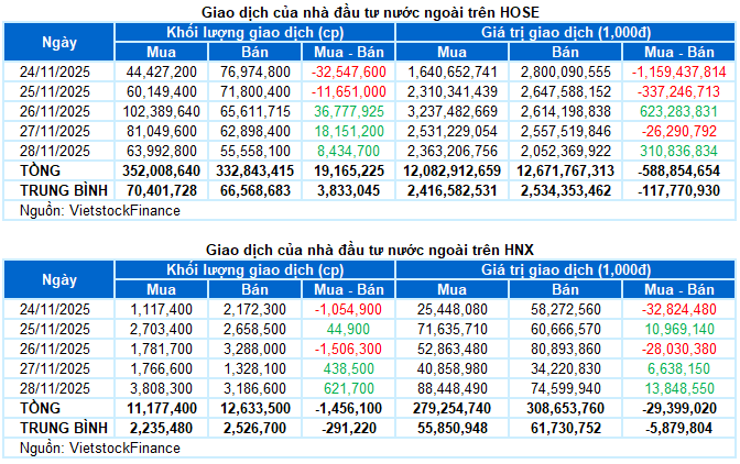 I. THỊ TRƯỜNG CHỨNG KHOÁN VIỆT NAM TUẦN 24-28/11/2025