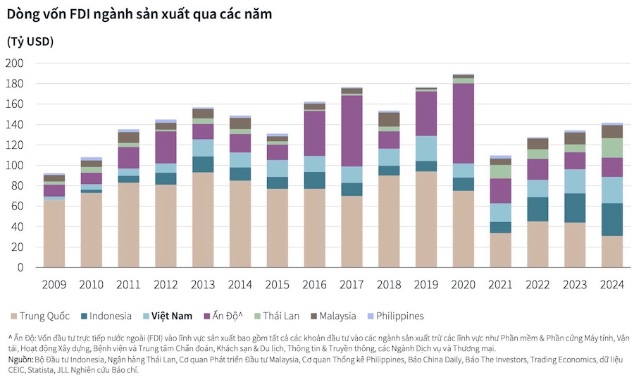 Việt Nam vẫn có lợi thế về chi phí cạnh tranh, nhưng giá đất và chi phí lao động đã tăng mạnh trong 5-10 năm qua, khiến lợi thế này dần thu hẹp. Do đó, Việt Nam cần nâng cao chất lượng các yếu tố phi tài chính từ môi trường đầu tư, thủ tục hành chính đến hạ tầng logistics để duy trì sức hấp dẫn.