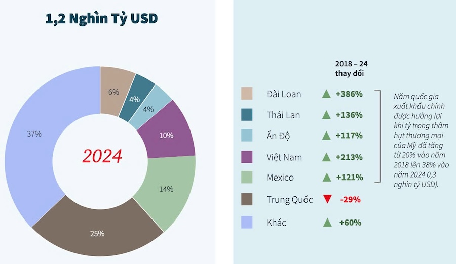 Cùng với các ngành truyền thống như linh kiện điện tử và máy tính, Việt Nam đang tiếp tục mở rộng vị thế trong chuỗi cung ứng toàn cầu. Tuy nhiên, bà Trang cũng lưu ý rằng các vấn đề về thuế quan trong năm nay đã ảnh hưởng nhất định đến nhóm ngành sản xuất chủ lực. Dù vậy, Việt Nam vẫn thể hiện sự chủ động trong đàm phán với Mỹ nhằm duy trì mức thuế thuận lợi, cho thấy cam kết mạnh mẽ của Chính phủ trong việc đồng hành cùng doanh nghiệp.