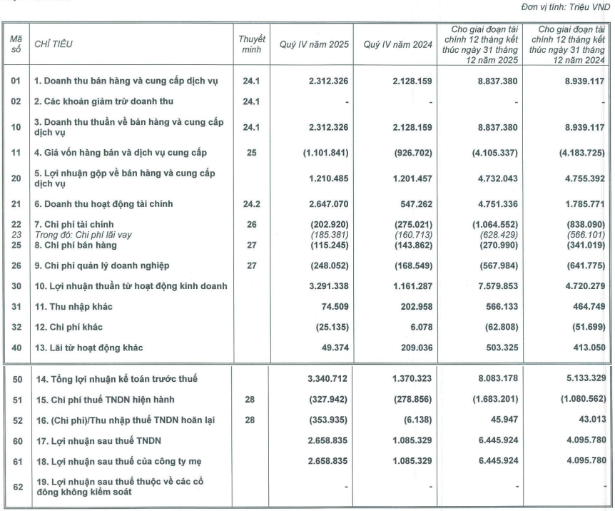 Nguồn: BCTC hợp nhất quý 4/2025 của VRE