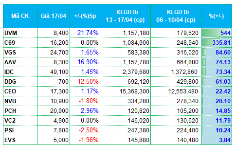 * Danh sách các mã tăng, giảm thanh khoản nhiều nhất xét đến khối lượng giao dịch bình quân trên 100,000 đơn vị/phiên.