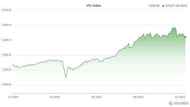 Diễn biến VN-Index từ đầu năm 2025 đến phiên 31/10/2025