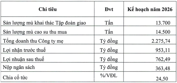 Trước đó, theo BCTC năm 2025, doanh nghiệp cao su này đạt doanh thu hợp nhất 1.79 ngàn tỷ đồng và lợi nhuận trước thuế gần 631 tỷ đồng, tăng lần lượt 10% và 16% so với năm trước.