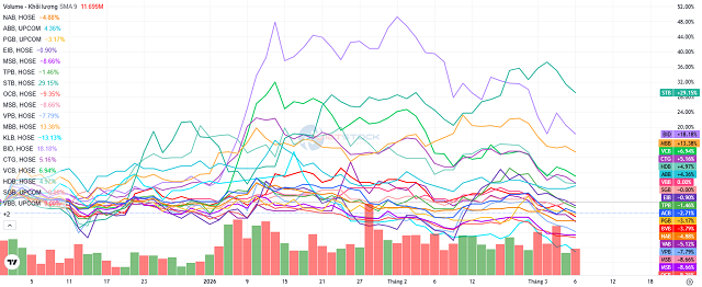 Diễn biến cổ phiếu ngân hàng từ đầu năm 2026 đến nay