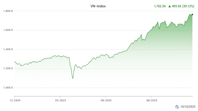 Năm 2025, thị trường chứng khoán Việt Nam đứng trước nhiều kỳ vọng với sự hỗ trợ mạnh từ nền tảng vĩ mô và câu chuyện nâng hạng. Thực tế, ngoại trừ cú sụt giảm mạnh vì thông tin thuế quan Mỹ hồi tháng 4, VN-Index đã tăng tới gần 379 điểm, tính đến thời điểm đầu tháng 10, tương ứng mức tăng gần 30%. Sau khi chính thức được nâng hạng vào ngày 8/10 (giờ Việt Nam), thậm chí VN-Index đã chính thức chinh phục cột mốc 1,700 điểm. Nếu so với đáy 1,094 điểm hồi tháng 4, mức tăng lên tới trên 60%.