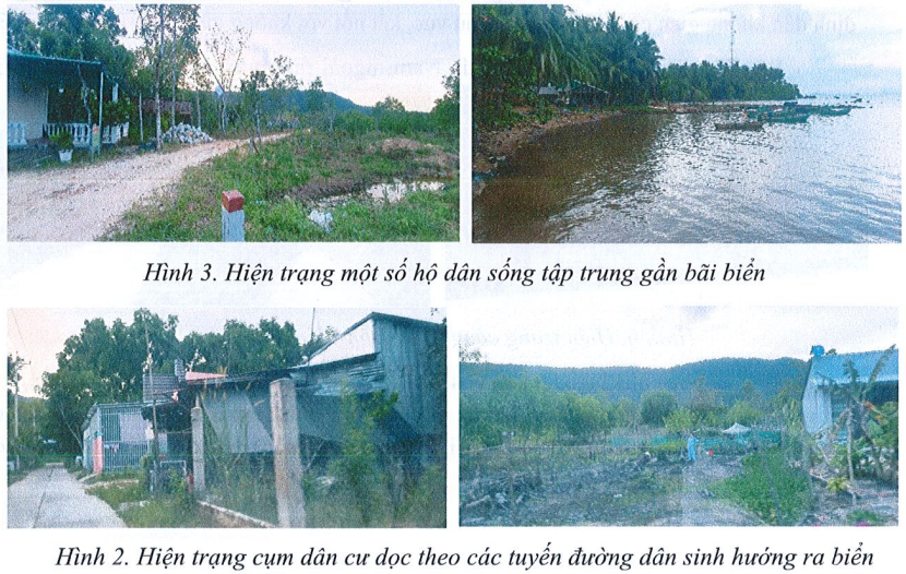Hiện đất trồng cây lâu năm gần 85.4ha và đất lâm nghiệp gần 79.2ha chiếm phần lớn tổng diện tích đất dự án. Ngoài ra, trong khu vực có công trình hạ tầng xã hội là trường học; nhà ở làng xóm hiện trạng, chủ yếu là nhà vườn, nhà sát mặt biển, nhưng không nhiều, quy mô nhỏ, nằm rải rác dọc theo chiều dài khu đất.