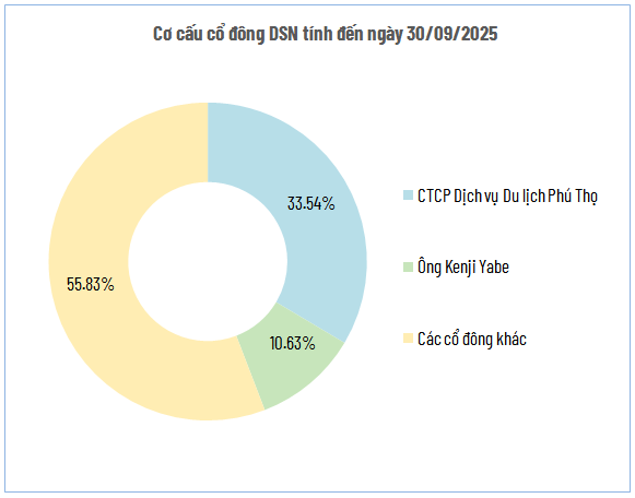 Tính đến ngày 30/09/2025, DSN có 2 cổ đông lớn là CTCP Dịch vụ Du lịch Phú Thọ và ông Kenji Yabe, lần lượt nắm giữ 33.5% và 10.6% vốn điều lệ, dự kiến nhận gần 10 tỷ đồng và hơn 3 tỷ đồng cổ tức trong đợt chi trả này.
