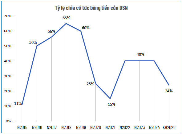 Năm 2025, DSN đặt kế hoạch doanh thu thuần 225 tỷ đồng, tăng nhẹ 3% so với năm trước, trong khi lợi nhuận sau thuế dự kiến giảm 12% còn 82 tỷ đồng. Công ty cũng đặt mục tiêu chi trả cổ tức tối thiểu 24%. Với mức tạm ứng 24%, DSN đã hoàn thành kế hoạch cổ tức năm theo phương án được ĐHĐCĐ thường niên thông qua.