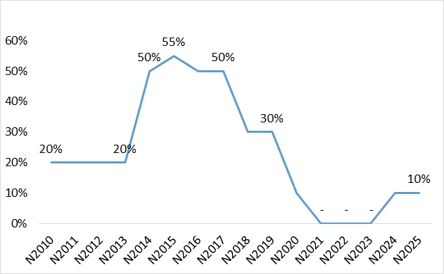 Tỷ lệ chia cổ tức bằng tiền của CTD từ 2010 - 2025