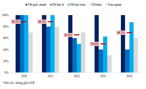 Ở góc độ toàn ngành, tỷ lệ hoàn thành kế hoạch lợi nhuận duy trì ở mức tương đối cao, trung bình cứ 10 ngân hàng thì có khoảng 6–7 ngân hàng đạt được mục tiêu đề ra, phản ánh việc các kế hoạch lợi nhuận thường được xây dựng dựa trên mức room tín dụng đã được cân nhắc kỹ. T