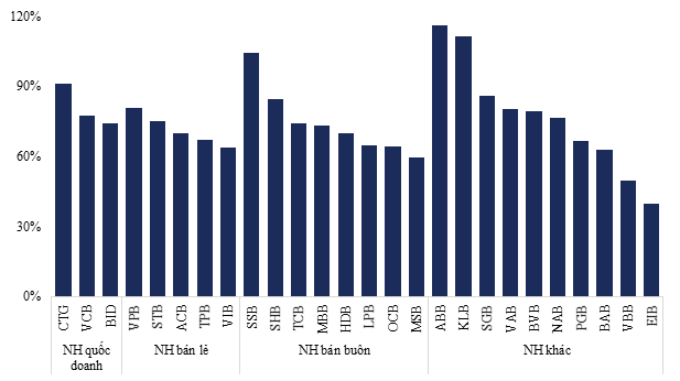 Biểu đồ 1: Tỷ lệ hoàn thành mục tiêu lợi nhuận trước thuế của ngành ngân hàng