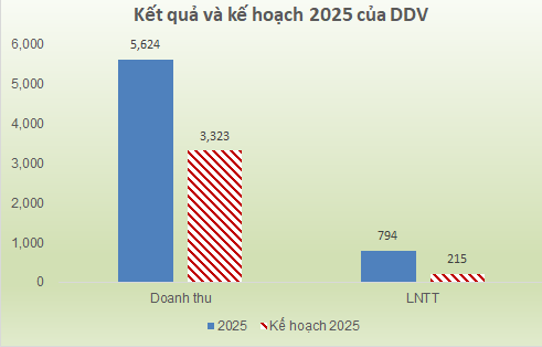 Thực tế, cả năm 2025, DDV đều có kết quả vượt trội, qua đó giúp thành quả lũy kế bứt phá. Năm qua, DDV đạt doanh thu hơn 5.6 ngàn tỷ đồng, tăng 67% so với năm trước; lãi sau thuế 634 tỷ đồng, gấp tới 3.8 lần, cũng là mức cao nhất 15 năm qua của thành viên Vinachem (Tập đoàn Hóa chất Việt Nam). So với kế hoạch ĐHĐCĐ 2025 thông qua, DDV vượt 69% mục tiêu doanh thu và đạt lợi nhuận trước thuế gấp gần 4 lần kế hoạch.