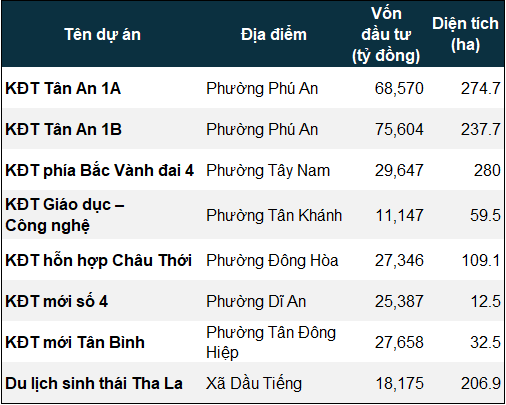 Trong 8 dự án được Sở Tài chính tỉnh Bình Dương (cũ) gọi đầu tư trong quý 3/2025, hai dự án khu đô thị mới phường Tân An 1B và 1A là 2 dự án có quy mô lớn nhất với vốn đầu tư lần lượt 75.6 ngàn tỷ đồng và 68.6 ngàn tỷ đồng. Trong đó, dự án Tân An 1B có diện tích 237.73ha, còn Tân An 1A là 274.71ha.