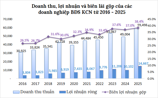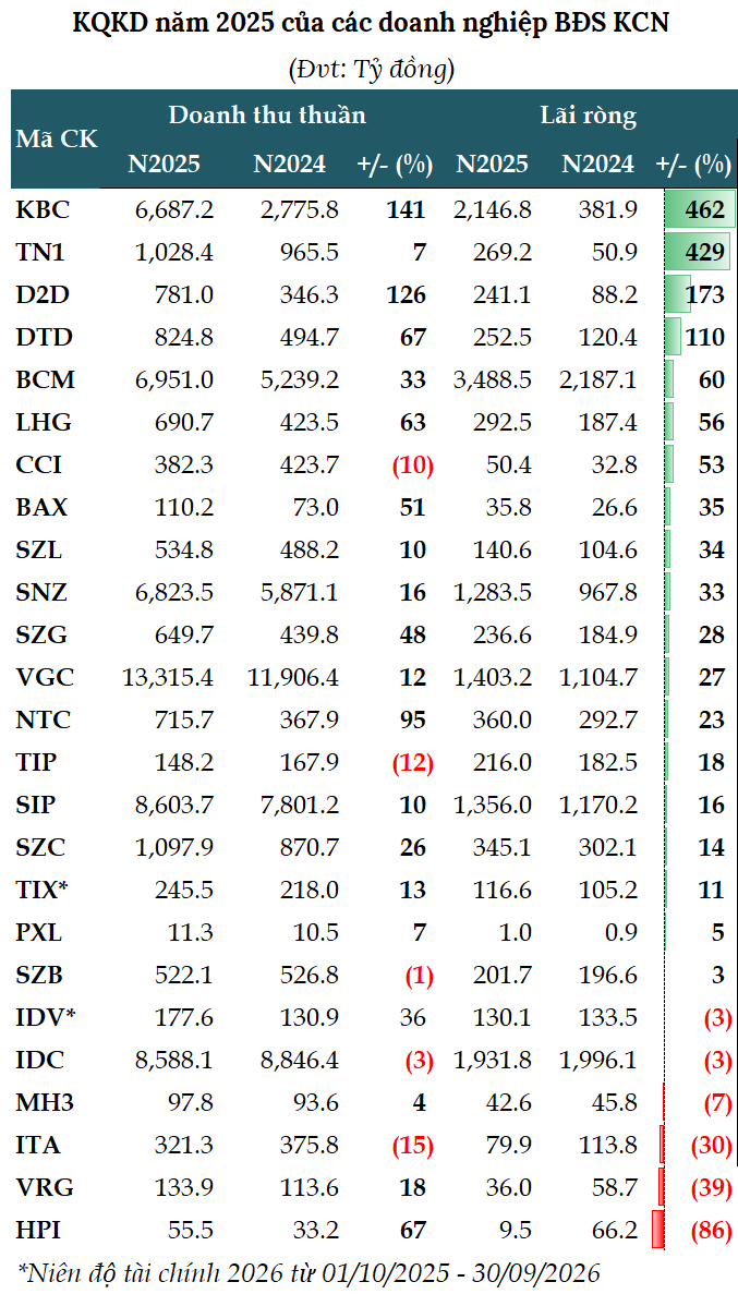 Bức tranh kinh doanh năm 2025 của nhóm doanh nghiệp bất động sản khu công nghiệp (KCN) khép lại với gam màu sáng.