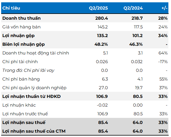 Kết quả kinh doanh quý 2/2025 của NCT