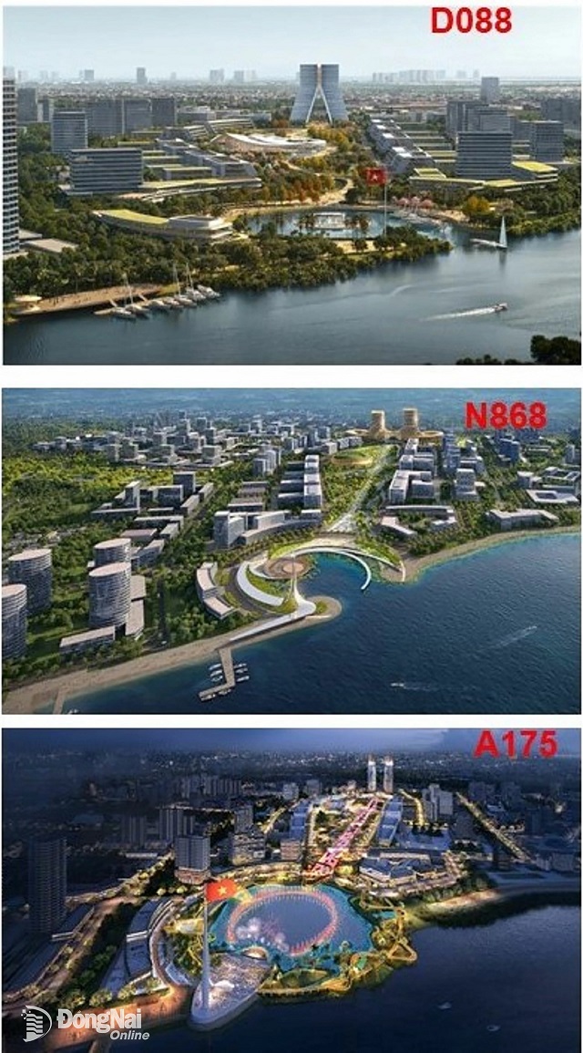 Phối cảnh tổng thể toàn khu Trung tâm chính trị - hành chính tỉnh Đồng Nai theo 3 phương án đoạt giải 3 cuộc thi tuyển phương án kiến trúc – Nguồn: Báo Đồng Nai.