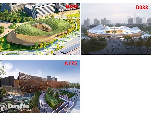 Phối cảnh Trung tâm hội nghị triển lãm trong Khu Trung tâm chính trị - hành chính tỉnh Đồng Nai theo 3 phương án đạt giải 3 cuộc thi tuyển phương án kiến trúc – Nguồn: Báo Đồng Nai.