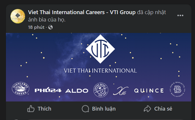 Logo Paris Baguette - thương hiệu bánh ngọt Hàn Quốc - vừa xuất hiện trên fanpage tuyển dụng của Tập đoàn Việt Thái Quốc tế (VTI Group) bên cạnh các chuỗi Highlands Coffee, Phở 24, The Coffee Bean & Tea Leaf... gợi mở khả năng tập đoàn này đang chuẩn bị mở rộng danh mục F&B với một cái tên quốc tế mới.
