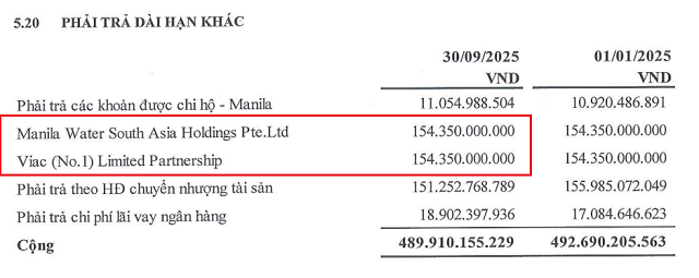 SII vẫn đang phải trả hơn 154 tỷ đồng cho VIAC và Manila Water. Nguồn: BCTC hợp nhất quý 3/2025 của SII