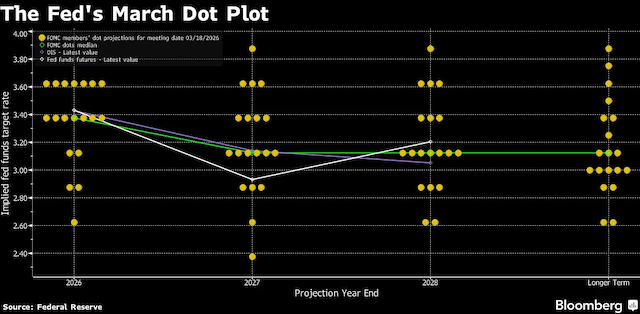Dù mức độ bất định gia tăng, các quan chức vẫn phát tín hiệu rằng chu kỳ cắt giảm lãi suất chưa kết thúc. Biểu đồ “dot plot” – thể hiện dự báo của từng thành viên FOMC – cho thấy khả năng có một lần giảm lãi suất trong năm nay và thêm một lần nữa vào năm 2027, dù thời điểm cụ thể vẫn chưa rõ ràng.