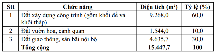 Cơ cấu sử dụng đất dự án