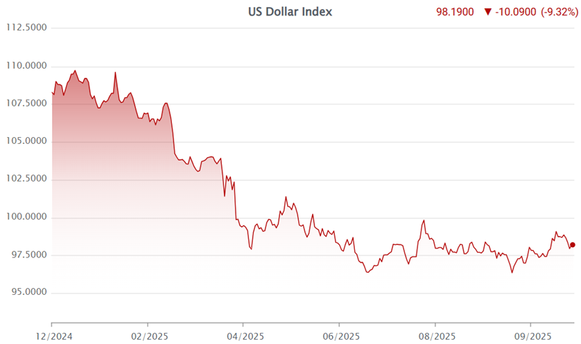 Diễn biến DXY từ đầu năm 2025 đến ngày 17/10