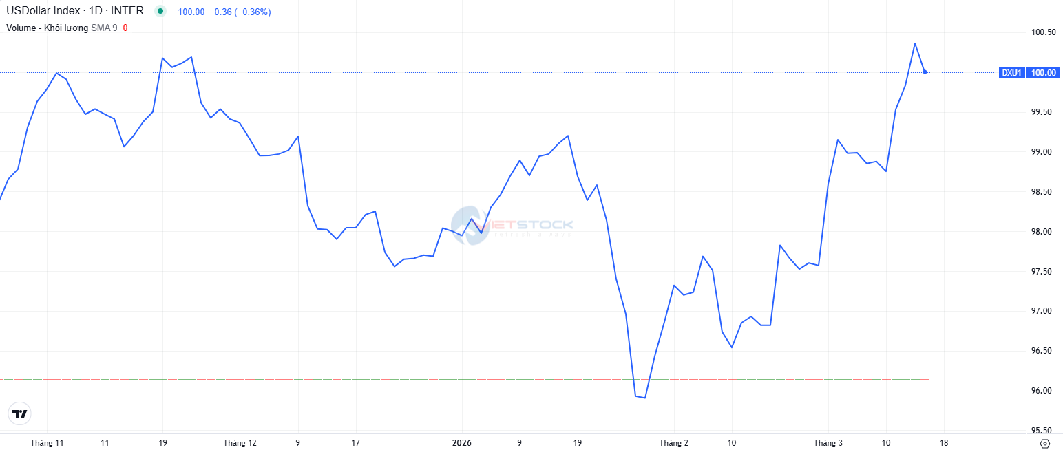 Giải thích về đà tăng của đồng bạc xanh khi USD-Index vượt mốc 100 điểm, ông Huy chỉ ra 2 nguyên nhân cốt lõi. Thứ nhất là sự gia tăng nhu cầu sử dụng USD để giao dịch dầu mỏ, vũ khí, cũng như tâm lý xem đây là hầm trú ẩn an toàn. Thứ hai, những lo ngại về lạm phát dai dẳng đã làm thay đổi kỳ vọng của thị trường, khiến họ tin rằng Cục Dự trữ Liên bang Mỹ (Fed) sẽ thu hẹp số lần hạ lãi suất trong thời gian tới.