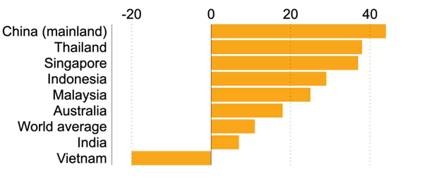 Theo báo cáo của Hội đồng Vàng Thế giới (WGC), trong quý 2, đầu tư vào vàng thỏi và vàng xu tại Thái Lan đã tăng 38% so với cùng kỳ năm 2024, tiếp theo là Singapore (tăng 37%), Indonesia (tăng 29%) và Malaysia (tăng 25%). Mức tăng này cao hơn đáng kể so với mức trung bình 11% trên toàn cầu.