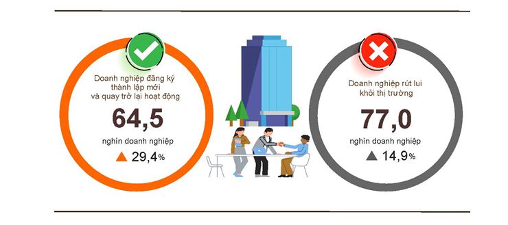 Bên cạnh đó, cả nước có 29.0 nghìn doanh nghiệp quay trở lại hoạt động (giảm 0.2% so với cùng kỳ năm 2025), nâng tổng số doanh nghiệp thành lập mới và quay trở lại hoạt động trong hai tháng năm 2026 lên gần 64.5 nghìn doanh nghiệp, tăng 29.4% so với cùng kỳ năm 2025. Bình quân một tháng có 32.2 nghìn doanh nghiệp thành lập mới và quay trở lại hoạt động.